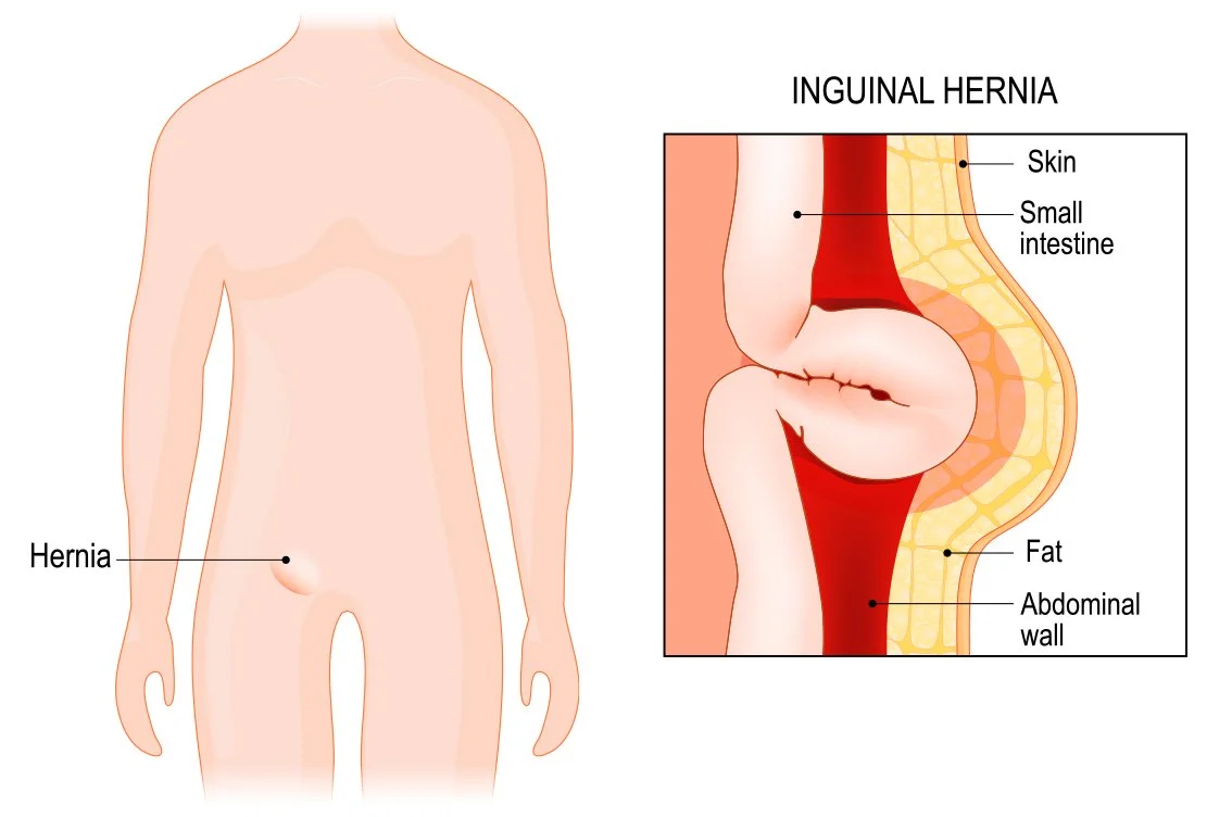 A hernia happens when an organ or fatty tissue squeezes through a weak spot in a surrounding muscle or connective tissue called fascia. They often occur where the abdominal wall is weaker, such as in the abdomen (belly area) or groin, and can have various causes.